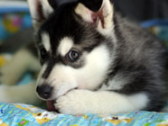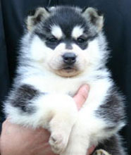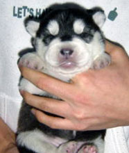 | 生後直後のバルトです。何とも可愛い。 | バルト生後37日目。生意気な気性が目と口元に。 | 上に乗っているバルト。なんとも図々しいやつ。 |