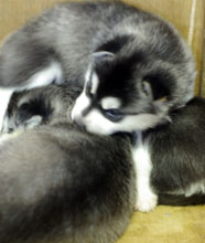 9月8日に生まれた2頭の純白のハスキーの男の子たちは、毛質がふわふわで、鼻先なんかの薄桃色は作りたての桜餅のような弾力。ホワイトハスキーはバルトの甥ということになります。ホワイトハスキーに魅了され、興奮を抱いて湖北へ。 |