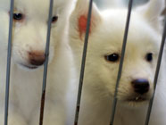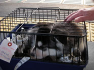 | 接種2回目。今日は静か。(03/16/2007) | スリッパに噛みつき叱られ食器棚の下に避難。 | 公園デビュー。ムサシの幼友達ペコの歓迎。 |