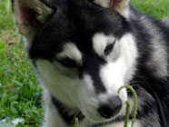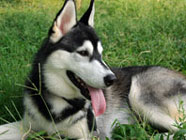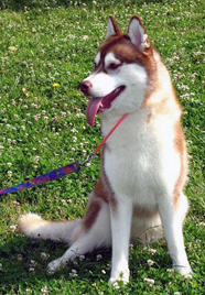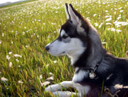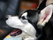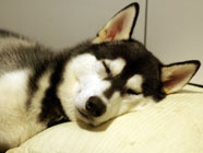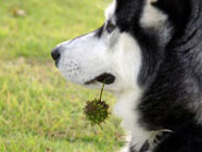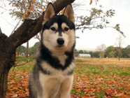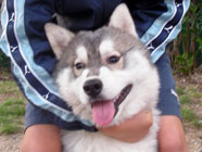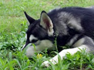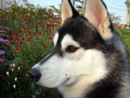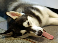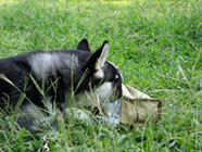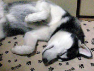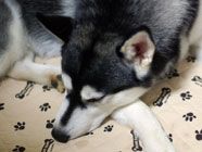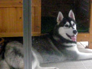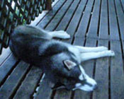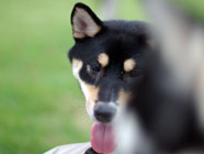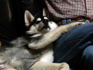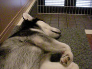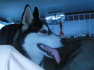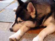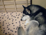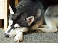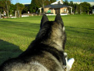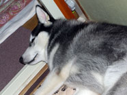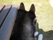 季節快適 10.21昼のドッグランでお友達と走りまわったあとの一休み。左ほほの傷は、旅行中、朝のドッグランで、遊ぼうと誘っていたら犬にいきなり引っ掻かれてついたもの。実際は蚊にされた程度。ハスキーの毛の深さがよくわかります。 |
