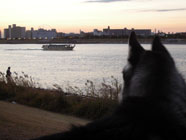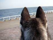 これが海なんだ 07.05.10東京湾が臨める公園。バルトは海を眺めるのが初めて。波頭に感動混じり。 |