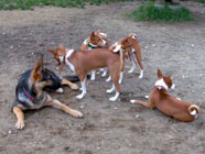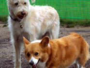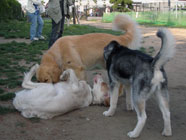 僕も仲間にドッグランにも慣れました。遊びの仲間に入れてよと、恐る恐る忍び足。 |