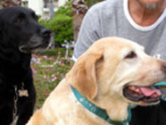 ジーナとリュック 07.13お友達の黒ラブのジーナ。イエローのリュックがジーナのお母さん。気だての優しい親子です。 |