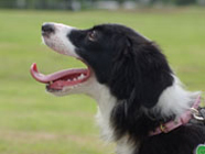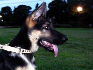 10/05/2007ドッグランで夕方に中型犬の家族数頭のうち一頭の男の子にお尻を追いかけられ、バルトは身を固くしておりました。 |