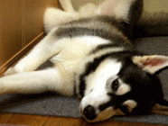 バタンキユー 11.20寒さが少し緩み、お散歩仲間が出そろい、シェパードのメイちゃんと少し長めのバトルを楽しみました。で、お家に帰ると、バタン、キュー。 |