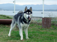 浜名湖で遊ぶ 11.02バルトの出身犬舎でホワイトハスキーが生まれたというので、バルトとご挨拶に。「一気に駆け抜けるのはバルトにきつい」と口実をつけて浜名湖を中継点にし、立ち寄り湯もプランに。ペンションのドッグランでご満悦のバルト。 |
