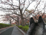 秋も深まり 11.21クリスマスイブに匹敵する記録的な冷え込み。バルトのお散歩道の桜並木は、錦秋の装いを冬支度にむかって脱ぎ去ろうとかと逡巡しているようす。バルトは、夕涼みに近い意気揚々ぶりで逍遙三昧。 |