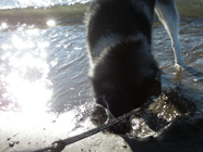 潮干狩り海辺の公園に。富士山が遠くに浮き上がり、バルトは大はしゃぎし、波を捕まえようと必死。新年早々、泥まみれになったバルトのお洗濯。 |