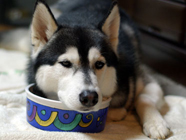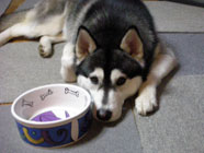 バルトが2歳「今日で2歳だ!」。ランから家に帰るとステーキ肉が。野菜を加えて煮込んでいるとバルトの大げさな舌なめずり。勢いよく、美味しい物から平らげました。空になったお皿の上にあごをのせて「追加を出さないと許さないぞ!」と催促のポーズ。 |
