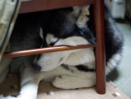 疲労困憊ランで仲良しと大立ち回りをし、昏睡状態。 家族の夕食が終わると起き出してきたが、追加の催促もなしにまたソファでスイスイ。 |