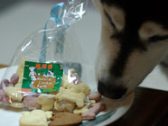ごちそうになりますホワイトデーにクッキーが好評とのニュースに乗せられてムサシの大好物だった犬用クッキーを北千束まで求めに出かけました。お店までかなりの距離をムサシとドライブしたものです。 |
