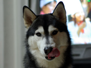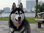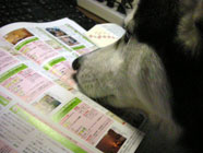 ハスキーグッズお友達からいただいたハスキーグッズ。背景はムサシをプリントしたマグカップ。ムサシの青春時代にはいずこにもハスキーものが幅をきかせていたもの。息を吹き返しているのでしょうか。 |