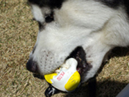 なかなかの強敵パッチお気に入りおもちゃを横取りし、粉砕作業に熱中。これがなかなかの強靱さを持ち合わせ、今も原型を維持。 |