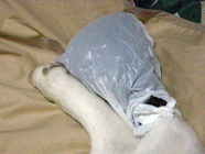 運動手控え深夜の散歩時に猫を追いかけて植え込みに飛び込み、足を切った。手当をして傷口を保護。絨毯の血は今だ消えず。 |