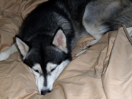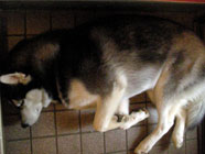 安心しました男の子の大型犬を保護。穏やかな子。2日後に飼い主が見つかり、安心したバルトは爆睡状態。朝から睡眠不足の解消スタート。 |