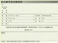 しっくりこない3月21日にワクチン接種、4月28日に狂犬病予防注射接種済証を受け取り。「所有者」と表記されるとバルトが物品みたい。伝染病予防ワクチン接種証明書は「飼い主」。 |
