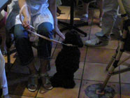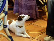 模範演技だよ「ドッグカフェマナーセミナー」。オスワリ、マテなどの「特訓」タイムに。愛犬たちは模範演技を見せつけて、ご主人と会場をどよめかせたのでした。バルトは足の炎症でお留守番。 |