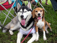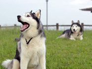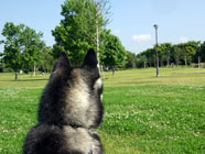お家についたぞ6日には、バルトの実家の近くにあるドッグランで、ハスキーズの皆さんの歓迎を受けて念願の対面。いずれも美麗を競い合う乙女に出会い、ハスキー仲間に恵まれた楽しい旅行でした。 |