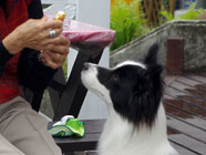 ドッグセミナー今回も時間帯は午後2時から2時間ほど。トレーナーの楽しいマナーとしつけの手ほどきから始まり、少し疲れたかなと思う頃合いに休憩タイム。おいしいアイスクリームなどでのどをなめらかにしての歓談がとても楽しそうでした。 |