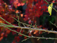 夜昼逆転の開始威張っていた夜の女王がようやく疲れはじめ、お日様の力が強まっていきます。お散歩時間が、朝は早まり、夜はのんびりと遅くなりますね。ベランダに出ましたら、落ちずにふんばっている楓と百日紅を背にして、梅の新しい世代が気丈に勢いをましていました。 |