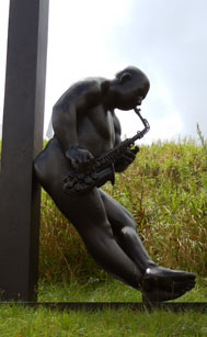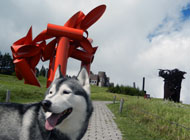 愛犬同伴で野外展示のオブジェを鑑賞できる |