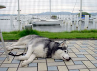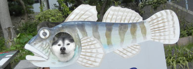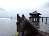 所用で京滋に出かけることに。湖畔のホテルで風に吹かれて涼むバルト。 用向きを終えて琵琶湖レイクサイドを巡り、近江八景のひとつ、樫田の浮御堂へ。犬は境内に入れないので、遠くからお堂と湖面にみとれるバルト。 「鎖あけて月さし入れよ浮御堂(芭蕉)」 近江八幡にある鮎屋。バルトといたずら記念撮影。 |