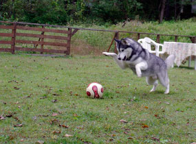 珍しくボール遊びに興じるバルト。 このペンションのドッグランが気に入り、散歩を催促するふりをしてドッグランに一目散。 |