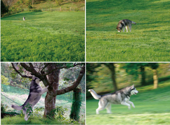 | 寝坊バルトが珍しく早朝からドッグランでおおはしゃぎし、気分爽快のようす。 |