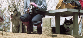 | 少しハードなトレッキングにムサシとジョンを連れて出かけました。 ビデオを撮っている間はポーズをとり、撮り終えると戻ってくるので、相棒達の倍以上を歩くことになるのですが、それがまた楽しいようなのです。 休憩タイムになれば遊びを誘い、いつも楽しい山旅です。 |