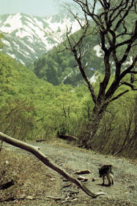 | 残雪を求めて新潟から会津、猪苗代方面に出かけました。 飯豊の峰は雪に包まれ、トレッキングしながら雪をみつけ、しばしムサシとジョンを楽しませてやりましたが、枯葉が残雪の上に降り注ぎ、ムサシもジョンも不満げでした。 酒元でも地酒が手に入らず、ブームの根強さに驚く旅でした。 |