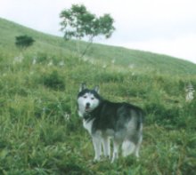 ハスキーエンジェルの写真募集に応募するために八ヶ岳の編笠岳まで登り、ムサシ主役の山岳写真を撮るつもりだったが、標高2,500b付近から岩場にたじろぎ始め、ついに「ボク帰る」と撤退を決める有様。